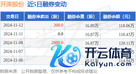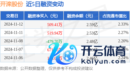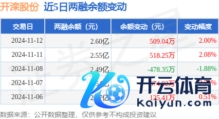 本站音问,11月12日,开滦股份(600997)融资买入1093.5万元,融资偿还584.09万元,融资净买入509.41万元,融资余额2.59亿元开云体育(中国)官方网站,近20个往改日中有15个往改日出现融资净买入。