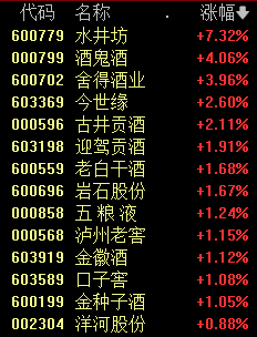 白酒板块高涨,水井坊、酒鬼酒等个股涨幅居前。