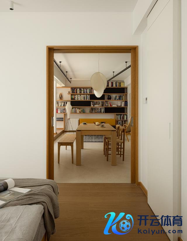 主卧看向客餐厅视角,当一个东谈主在家时,就可以将移门怒放,让光和空气在房子里解放穿梭。