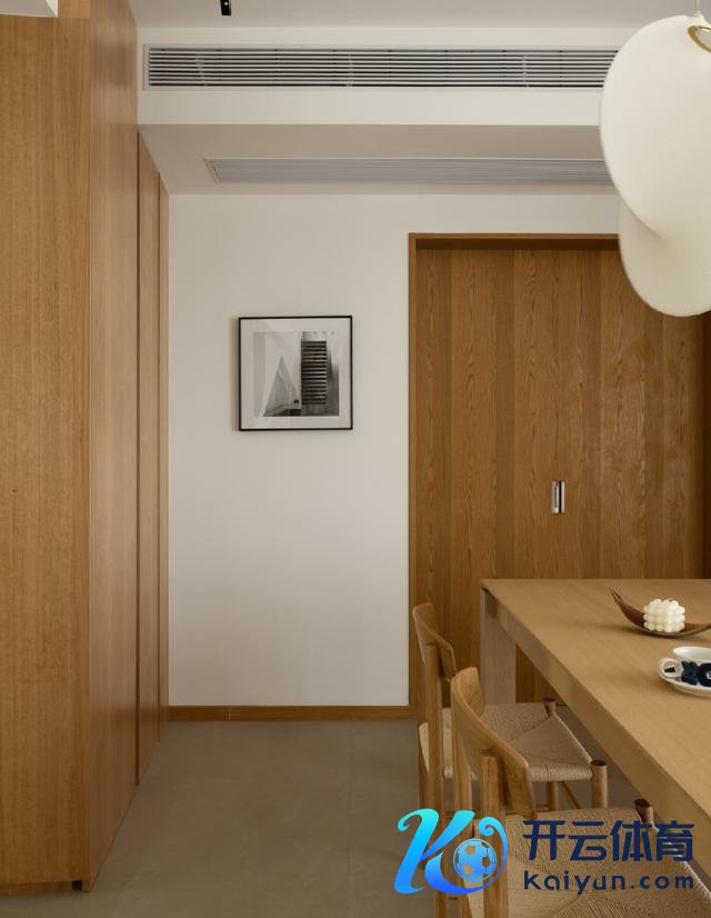 当主卧与餐厅买通之后,缱绻了一扇对开门。这么既普及了休眠区的典礼感,又为家里买通了第二条动线,并罢了了洄游。