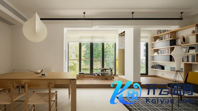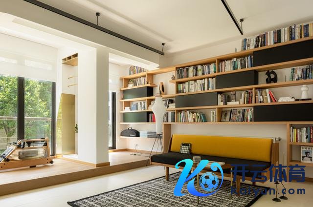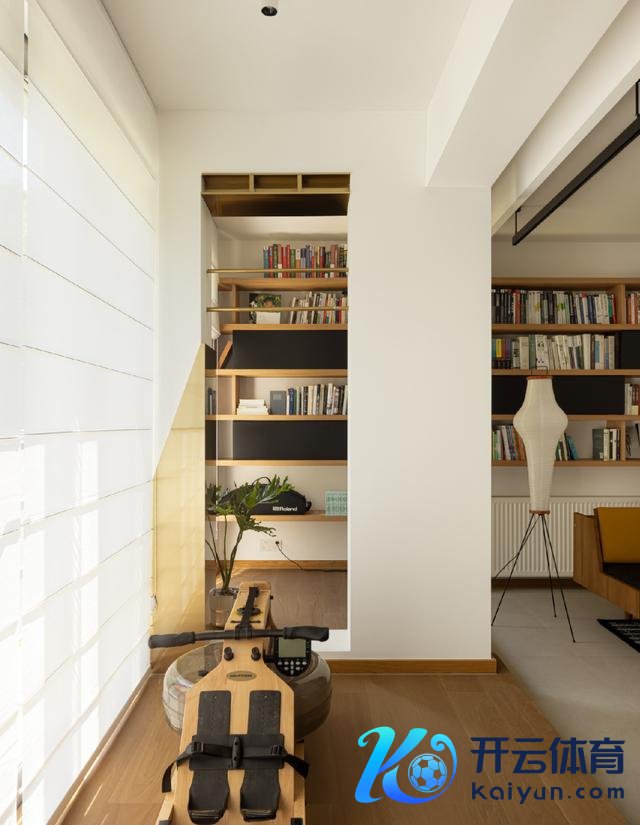 阳台合座举高,并作念了买通处置。一边为清闲阅读区,一边为健身区。此外,中间镂空区的黄铜不锈钢造型缱绻,也毛糙了荡舟机立起来。