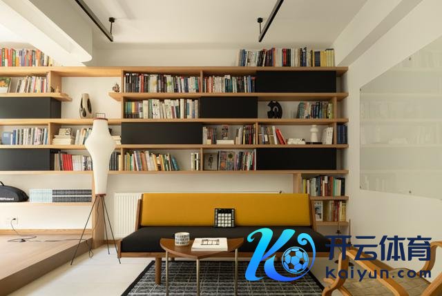 错杂传统客厅以电视机为中心,并给墙面缱绻满墙书架,一来与屋主的生计面目作念到了契合,二来也赋予了空间一些书香气,且遮挡性也非常棒。