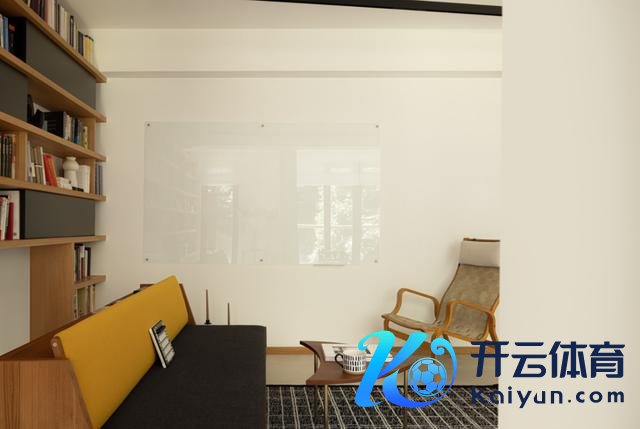 客厅一侧墙面加多白板,毛糙屋主阅读时纪录学习。