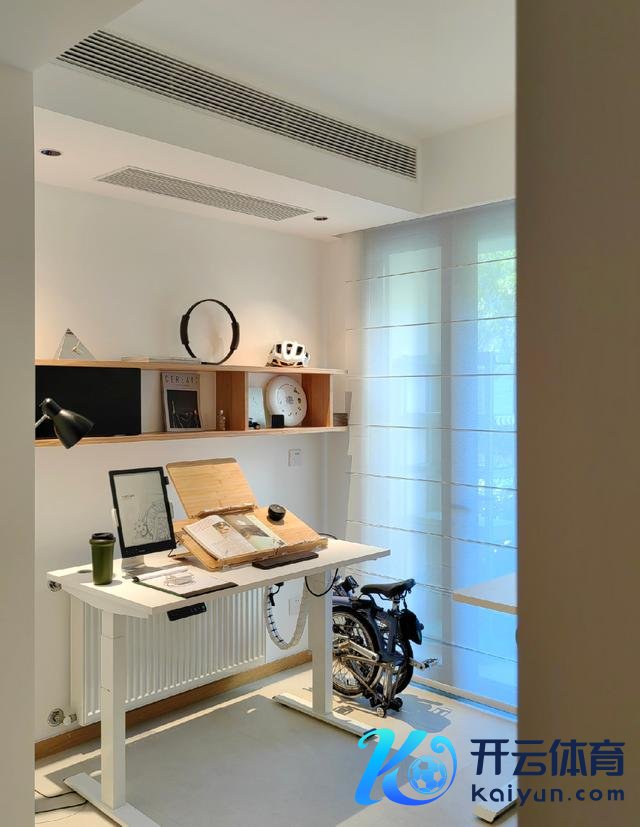 书斋的使用率相称高,是以在布局时加多了两台升降桌,一张阅读,一张职责,让空间愈加大意、舒畅。