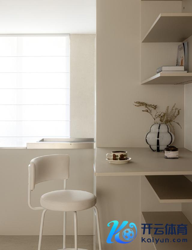 1、厨房作念开放式缱绻,并置入吧台功能,毛糙简餐。