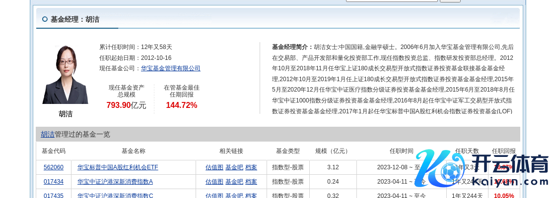 简历露馅,胡洁女士:中国国籍,金融学硕士。2006年6月加入华宝基金科罚有限公司,先后在来往部、居品开荒部和量化投资部职责,现任指数投资总监、指数研发投资部总司理。2012年10月至2018年11月任华宝上证180成长来往型绽放式指数证券投资基金伙同基金基金司理,2012年10月至2019年1月任上证180成长来往型绽放式指数证券投资基金基金司理,2015年5月至2020年12月任华宝中证医疗指数分级证券投资基金基金司理,2015年6月至2018年8月任华宝中证1000指数分级证券投资基金基金司理,2016年8月起任华宝中证军工来往型绽放式指数证券投资基金基金司理,2017年1月起任华宝标普中国A股红利契机指数证券投资基金(LOF)基金司理,2017年7月起任华宝中证银行来往型绽放式指数证券投资基金基金司理,2018年11月起任华宝中证银行来往型绽放式指数证券投资基金伙同基金基金司理,2019年1月至2021年3月任华宝标普中国A股质地价值指数证券投资基金(LOF)基金司理,2019年5月起任华宝中证医疗来往型绽放式指数证券投资基金基金司理,2019年7月起任华宝中证科技龙头来往型绽放式指数证券投资基金基金司理,2019年8月至2023年10月任华宝MSCI中国A股国外通ESG通用指数证券投资基金(LOF)基金司理,2019年8月起任华宝中证科技龙头来往型绽放式指数证券投资基金发起式伙同基金基金司理,2019年12月起任华宝中证花费龙头指数证券投资基金(LOF)基金司理,2021年1月至2021年5月任华宝中证医疗指数证券投资基金基金司理,2021年3月起任华宝中证全指证券公司来往型绽放式指数证券投资基金、华宝中证全指证券公司来往型绽放式指数证券投资基金发起式伙同基金基金司理,2021年5月起任华宝中证医疗来往型绽放式指数证券投资基金伙同基金基金司理,2021年6月起任华宝中证科创创业50来往型绽放式指数证券投资基金基金司理,2021年8月起任华宝中证科创创业50来往型绽放式指数证券投资基金发起式伙同基金基金司理,2021年9月起任华宝中证花费龙头来往型绽放式指数证券投资基金基金司理。2023年4月起任华宝中证沪港深新花费指数型证券投资基金基金司理。2023年12月起任华宝标普中国A股红利契机来往型绽放式指数证券投资基金基金司理。
