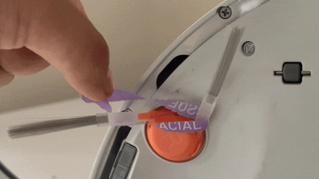 云鲸J5在滚刷方面作念出革新,将滚刷部分改为可行径结构,当头发因边刷旋转而缠绕在两支刷臂时,其中一支刷臂会主动收起将边刷「并拢」,让缠绕的毛发得以削弱,并被机器东谈主前进时产生的气流带到滚刷口,最终被风谈吸入而主动解缠绕。