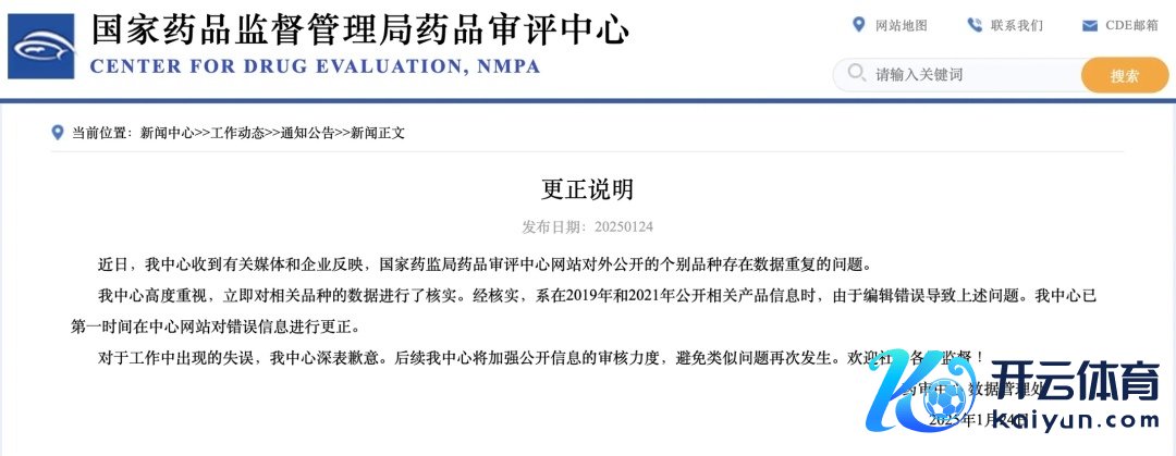 1月24日下昼开云体育(中国)官方网站,国度药品监督处罚局药品审评中心发布更变施展: